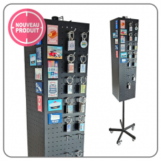 Présentoir rotatif pour porte-clés et magnets, robuste et fonctionnel, idéal pour optimiser la présentation en boutique. En tôle micro perforée, vous pouvez y placer de nombreux crochets à porte-clés pour agencer selon vos préférences tout en exposant des magnets.